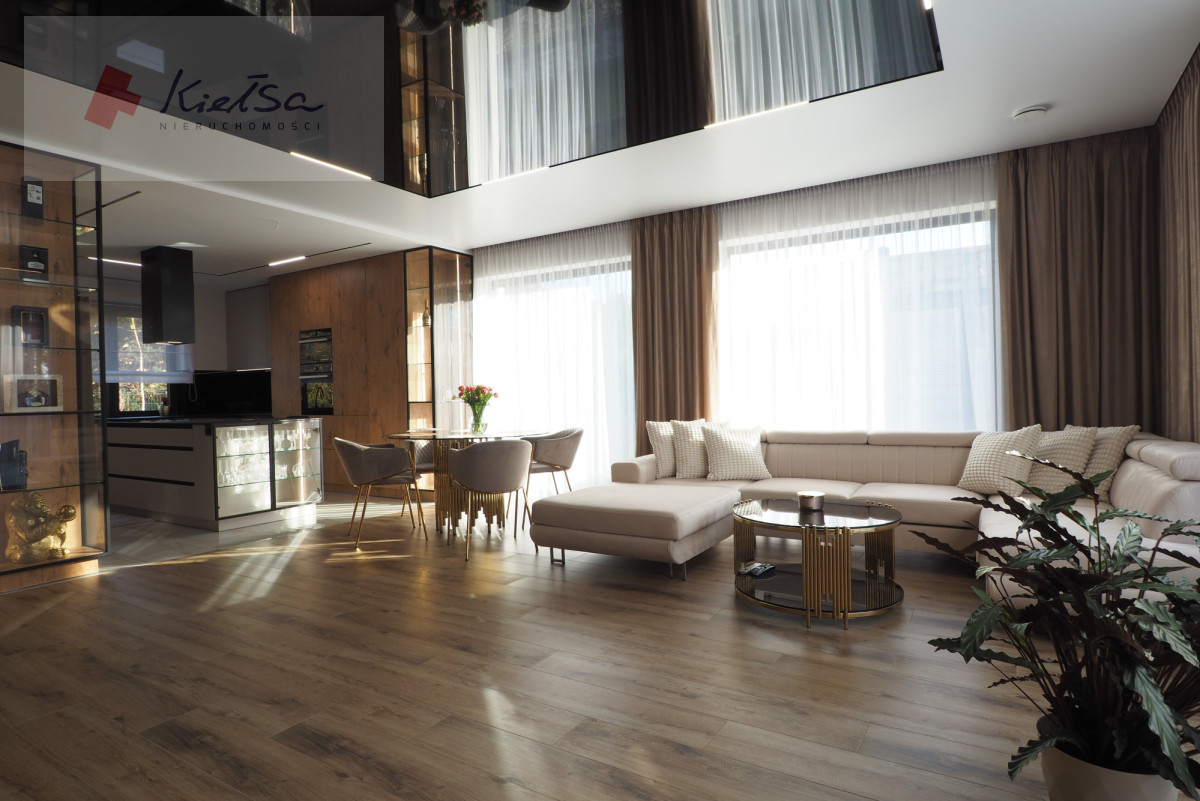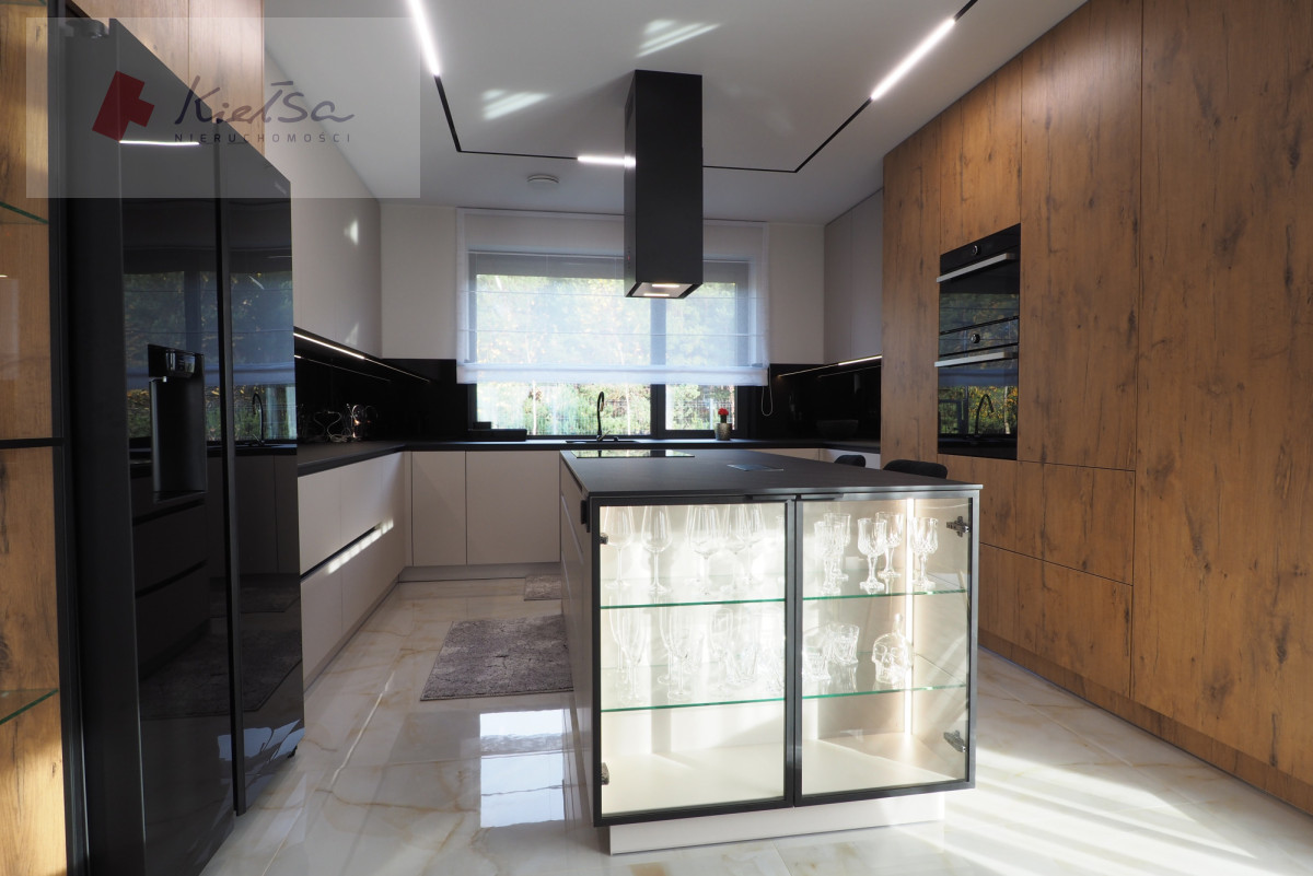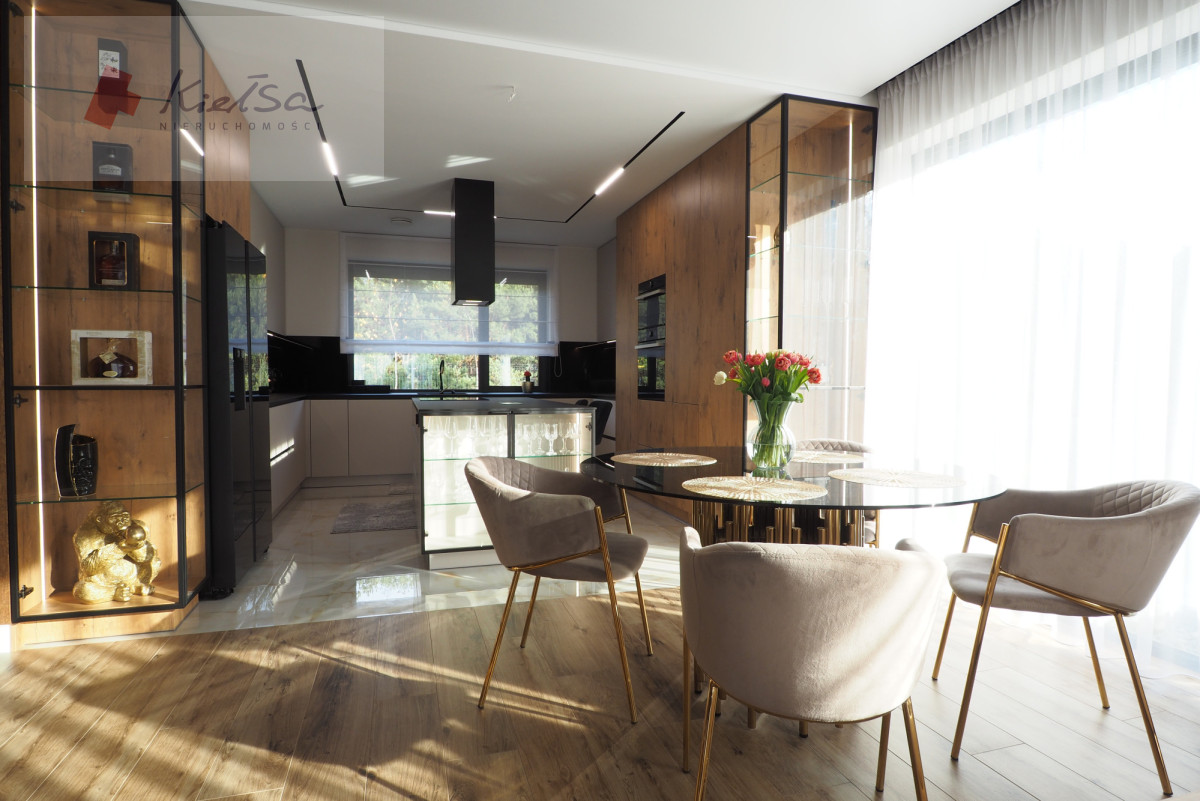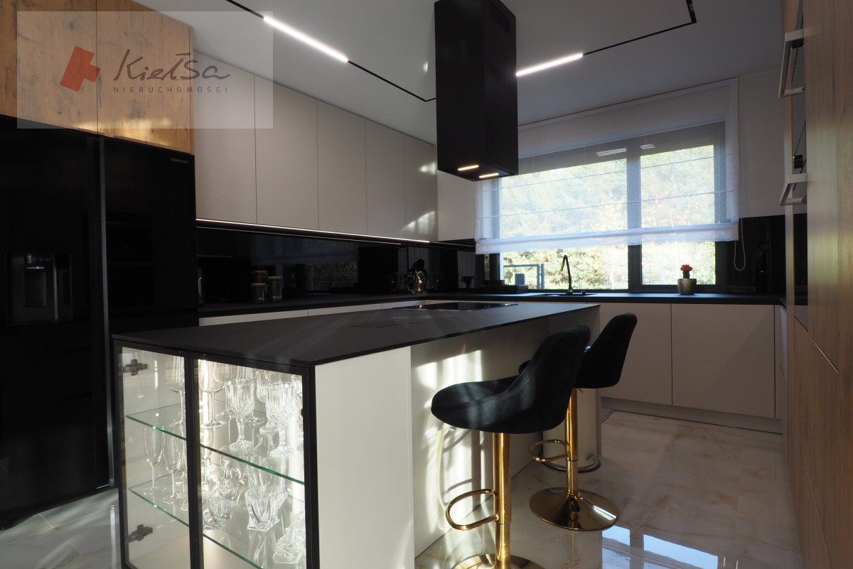 Funkcjonalny układ pomieszczeń, przestronny salon otwarty na kuchnię, z dużymi przeszkleniami oraz wyjsciem na ogród. Kuchnia z wyspą, zabudowa meblowa wysokiej jakości, z malowanej płyty mdf, dużo miejsca do przechowywania oraz blat roboczy zadowalający nawet najbardziej wymagających klientów.