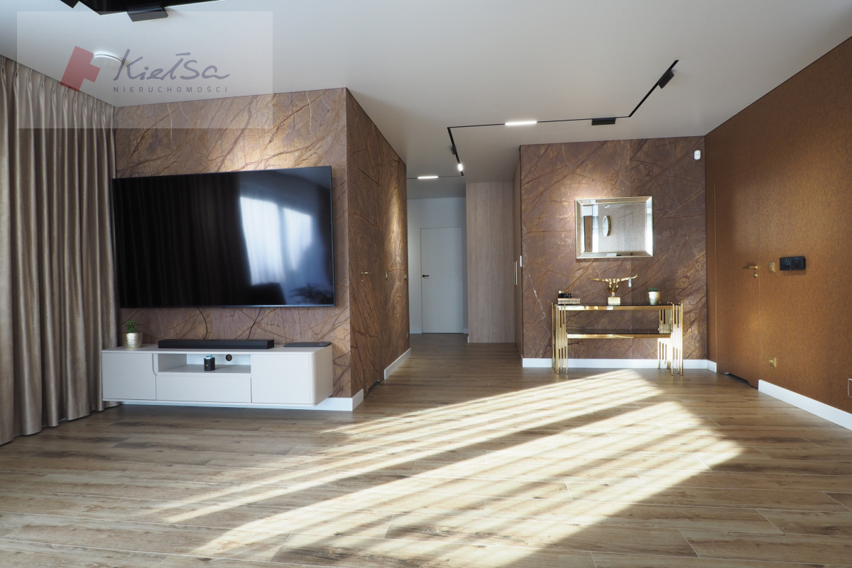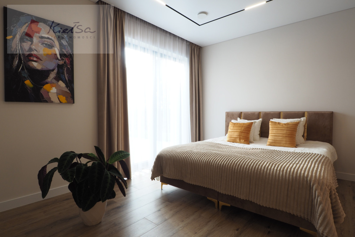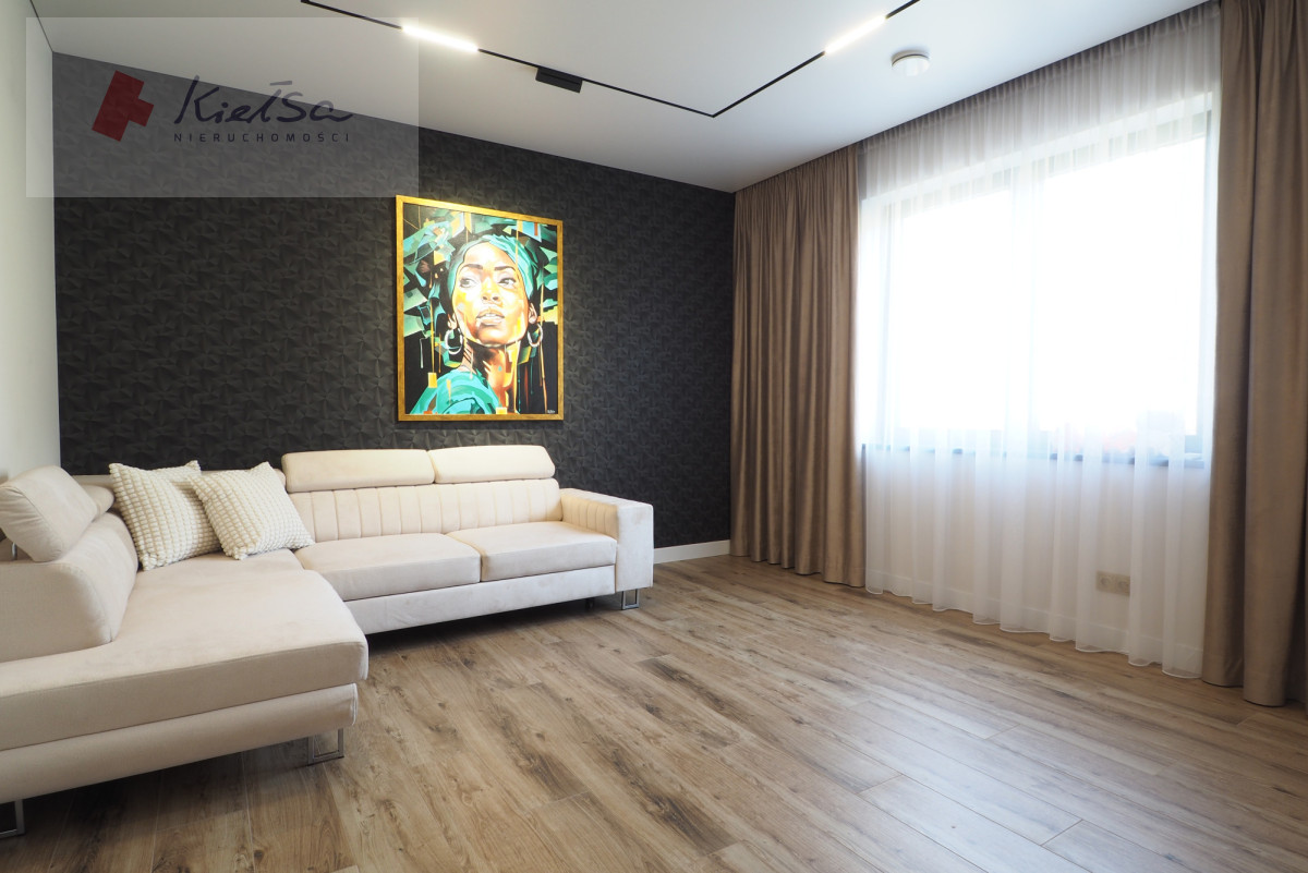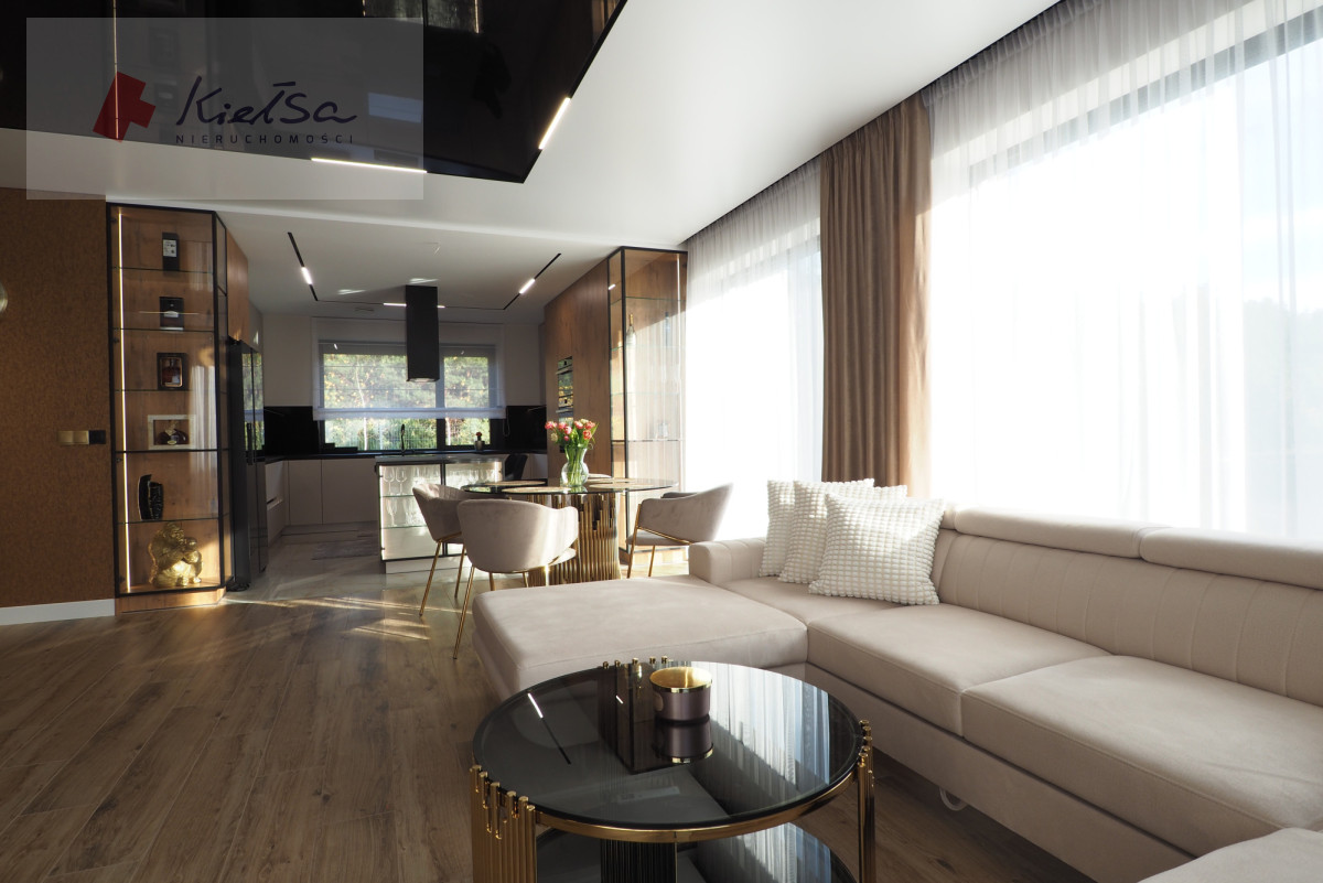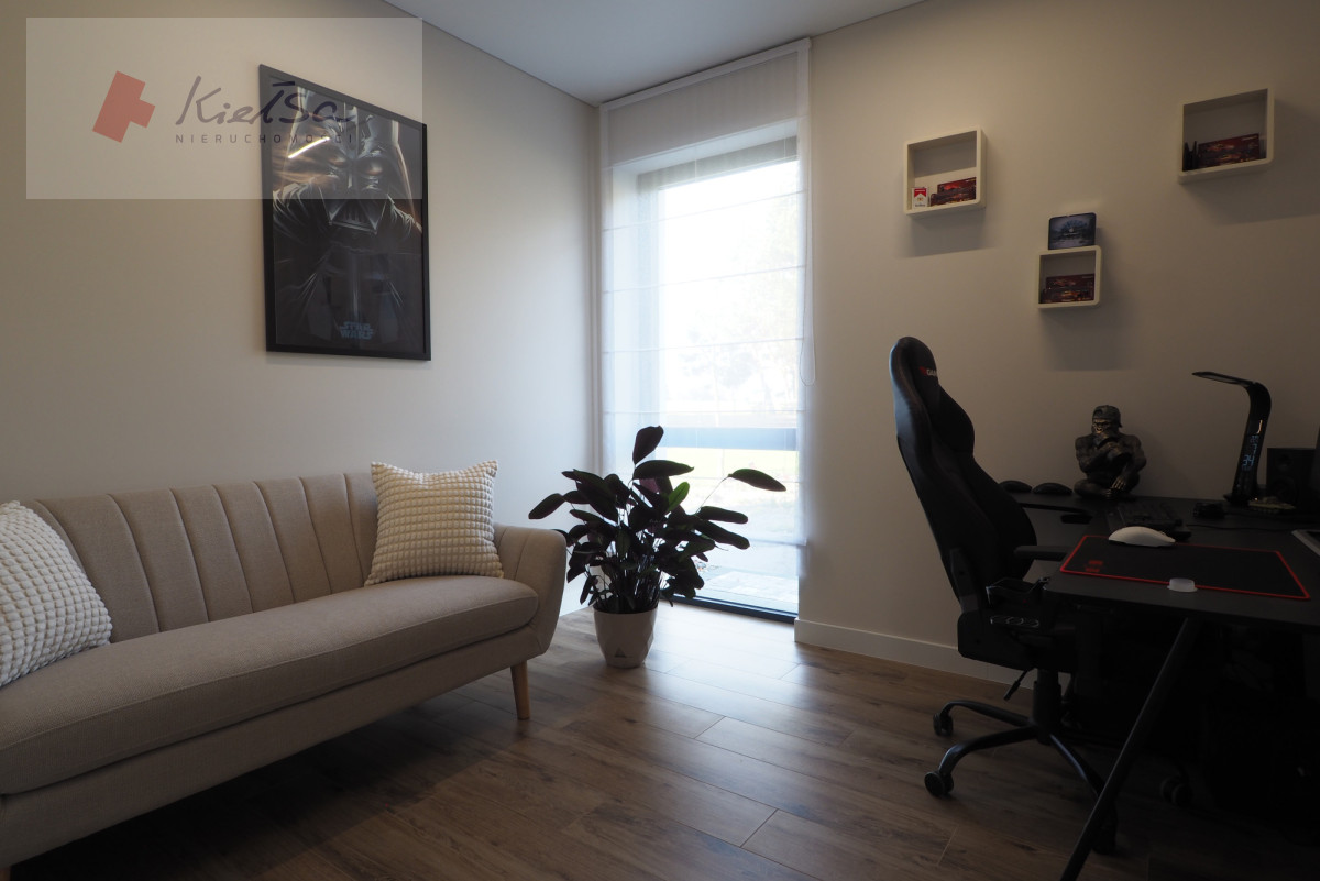 Funkcjonalny układ pomieszczeń, przestronny salon otwarty na kuchnię, z dużymi przeszkleniami oraz wyjsciem na ogród. Kuchnia z wyspą, zabudowa meblowa wysokiej jakości, z malowanej płyty mdf, dużo miejsca do przechowywania oraz blat roboczy zadowalający nawet najbardziej wymagających klientów.