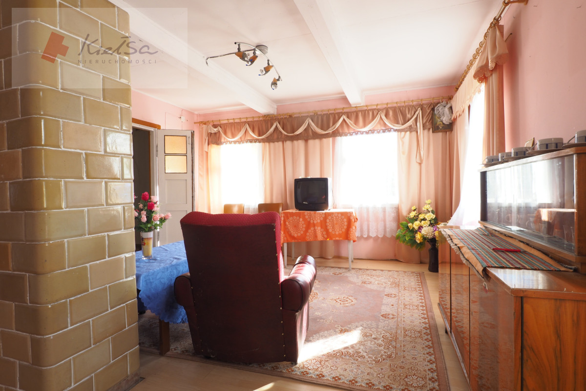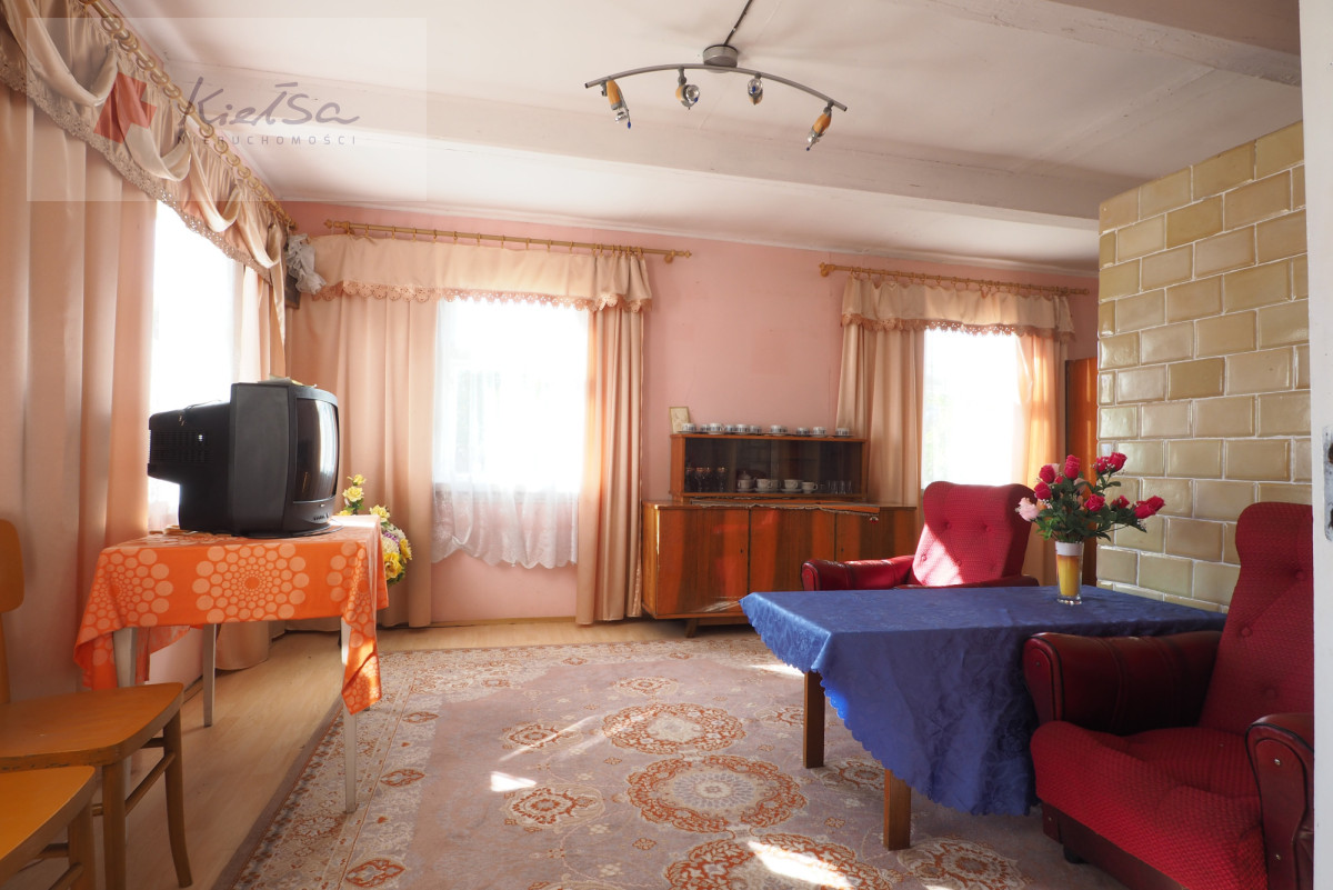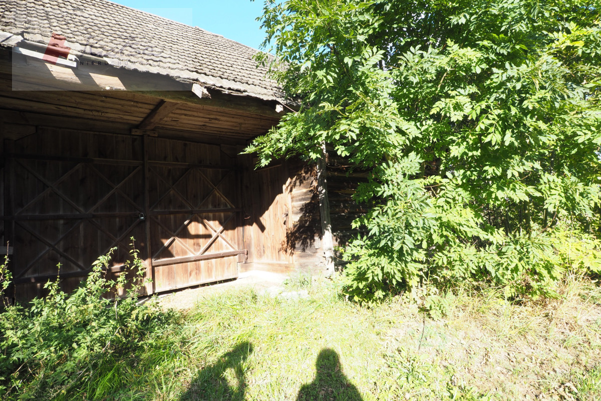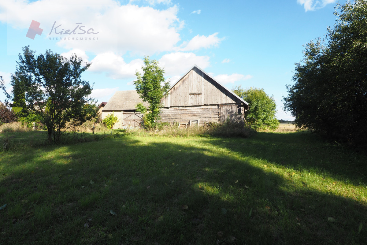 Działka o powierzchni 9672m2 zabudowana drewnianym budynkiem mieszkalnym o powierzchni 71m2, budynkami gospodarczymi oraz stodołą.