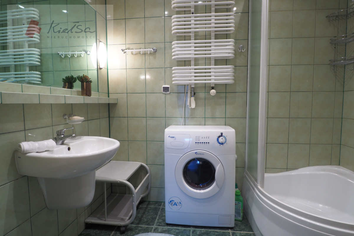 Łazienka razem z wc, kabina prysznicowa z siedziskiem.